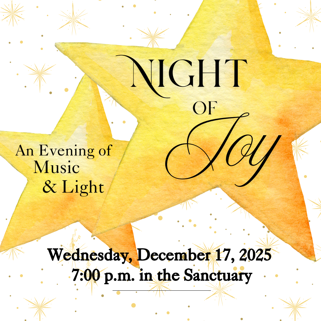 Come be part of this magical evening and experience a Night of Joy that will lift your heart, inspire your spirit, and remind us all of the hope and light this season brings. Open to all.